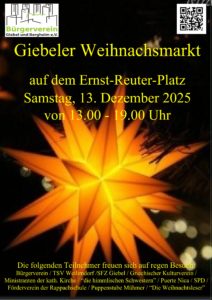 - Giebeler Weihnachtsmarkt am 13.12.2025, 13.00 – 19.00 Uhr auf dem Ernst-Reuter-Platz