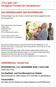 - Filmvorführung „Die Vergesslichkeit der Eichhörnchen“ am 13.11.2025, 09.45 Uhr im Bürgercafé